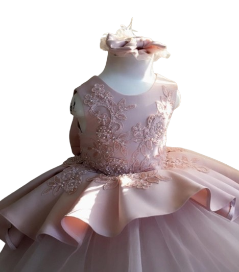 Nuestro hermoso vestido niña Bonita ruborizado está hecho de algodón, tul, satén y encaje, ¡dándole un aspecto romántico a la Alta Costura Infantil!