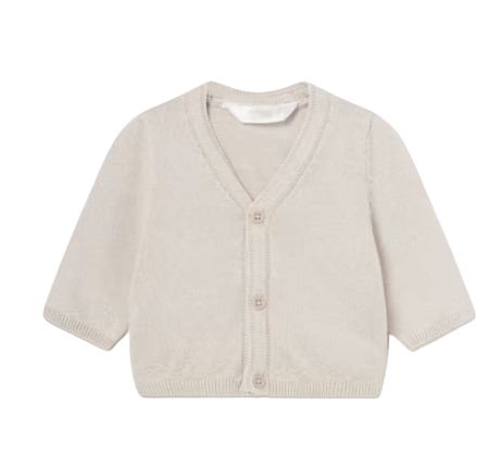 Cárdigan para recién nacido. Diseño de escote en pico. Cierre de botones en la parte delantera.