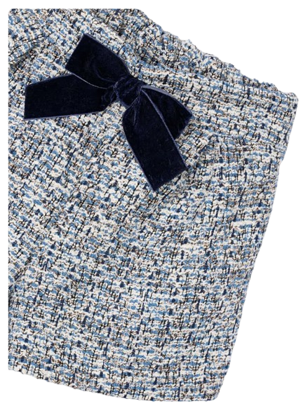 Shorts for girls. Adjustable elastic waistband with buttons inside the waistband for a better fit. Pleated design. Decorative elements: Bow.