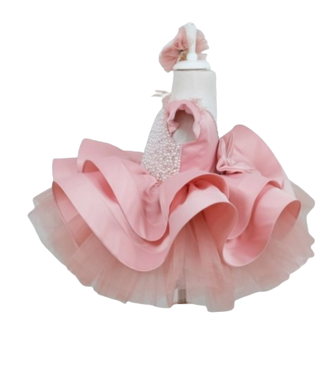 ¡Nuestro hermoso vestido Ana está hecho de algodón, tul, satén y perlas dándole un aspecto elegante a la Alta Costura Infantil!