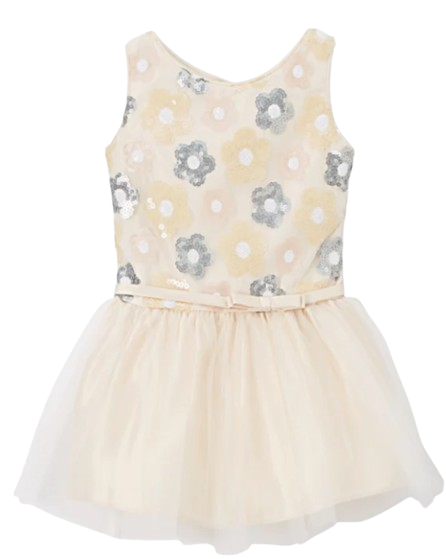 SK511T - Floral Sequin Drop Waist Girls Dress (Tan)