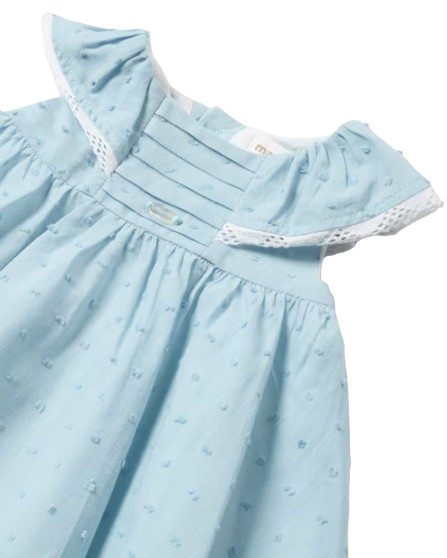 Short sleeved Dress for newborn. Button fastenings down the back to allow the garment to be put on and taken off easily.