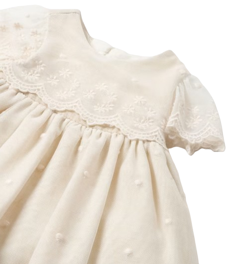 Short-sleeved Dress for newborn. Round neckline. Zip fastening on the back for a quick fit. Made with lightweight, sheer tulle fabric.