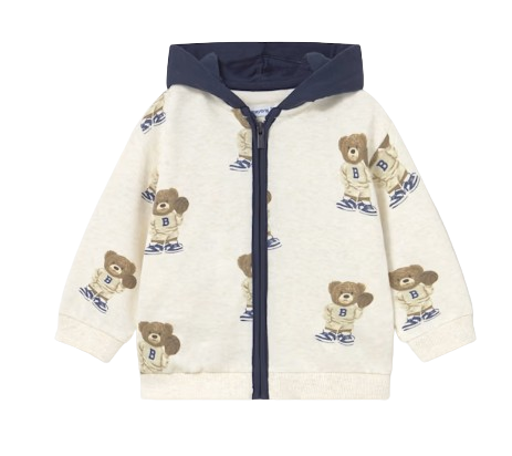 Long sleeved Hoodie for baby. Hooded collar. Front, central zip fastening. Elasticated hem and cuffs for a better fit. Camouflage pattern.