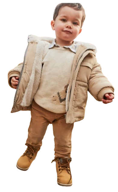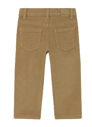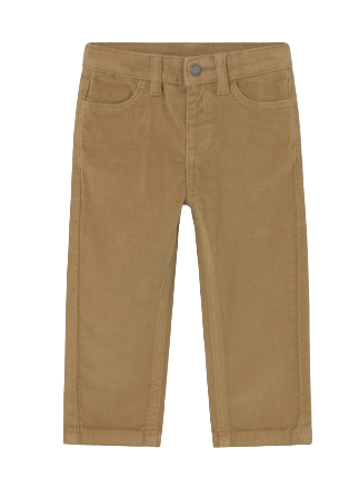 Classic line regular fit pants for baby. Single button fastening. Faux flies. Adjustable elastic waistband with buttons inside the waistband for a better fit. Made using comfortable and soft corduroy fabric. Design with multiple pockets.