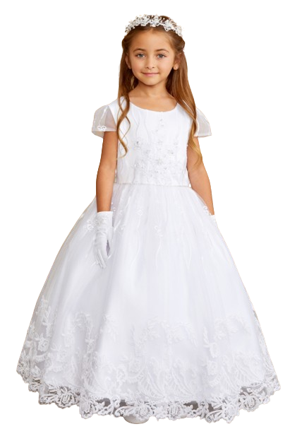 5841 - Floral Embroidery Bodice and Skirt Communion Dress