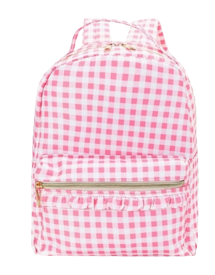 * Size:13*5*17 inches. Pink Plaid Ruffle Girls Backpack This stylish backpack has a roomy interior and adjustable straps, so your little one will be comfortable and ready to go. With a 5–10-day ETA, it'll arrive just in time for the start of a new school year.
