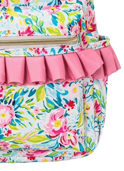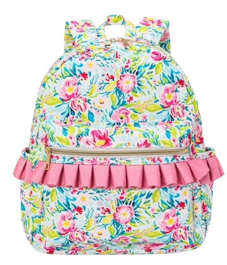 * Size:10*13.9*4 inches ETA: 5-10 Days Flower Kids Ruffle Backpack With its compact size of 10*13.9*4 inches, this Flower Kids Ruffle Backpack is perfect for young children to carry all their essentials.
