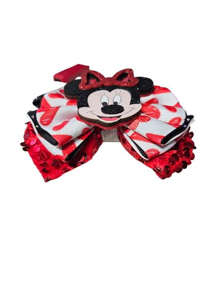 This special bow, inspired by Disney's beloved Minnie Mouse, adds an extra touch of cuteness to any outfit. With its unique design and iconic character, the Mouse Heart Bow is the perfect accessory for Disney fans of all ages. Show off your love for Minnie Mouse with this unique bow.