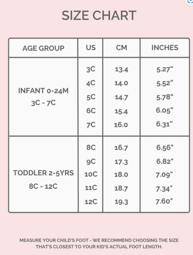* Fit: For best fit, measure your child's foot from heel to length of the longest toe. Our size guide shows the best size according to your child's foot length. If they are between sizes, we recommend sizing up.