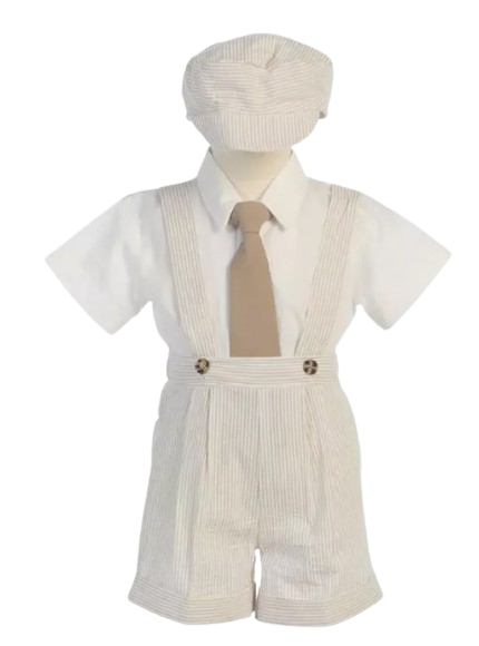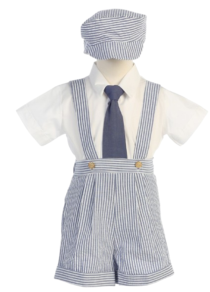 G822 - Seersucker Suspender Shorts with Clip-on Necktie