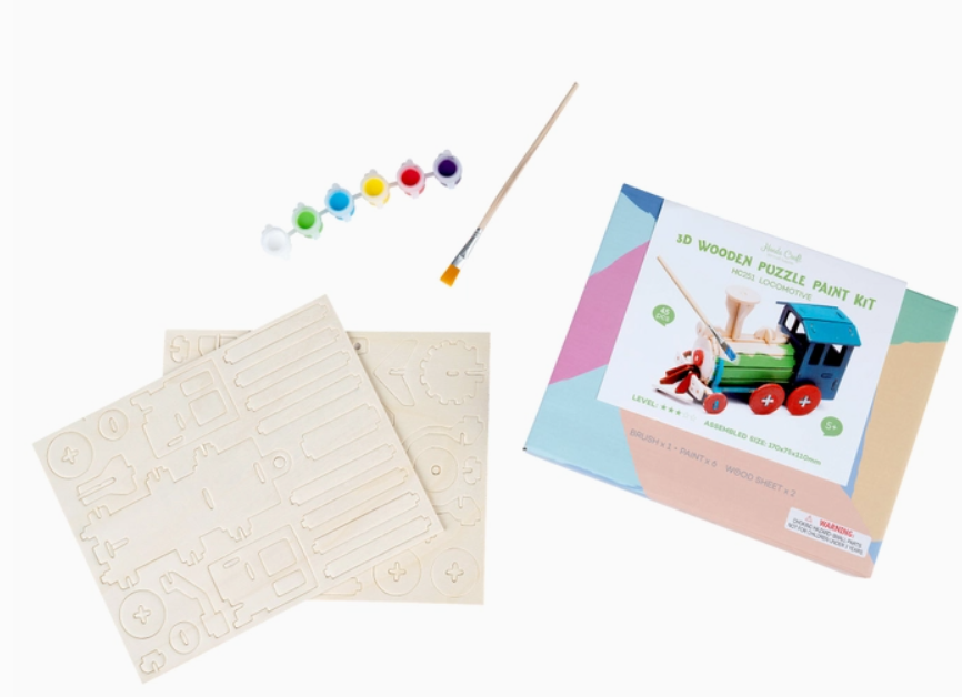 HC251 - 3D Wooden Puzzle with Paint Kit: Locomotive