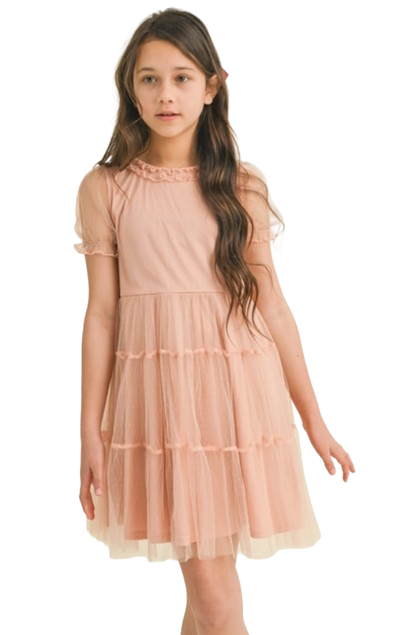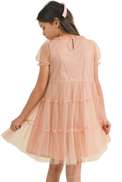 KD2720MV - Puff Slv Tiered Mesh Mini Dress