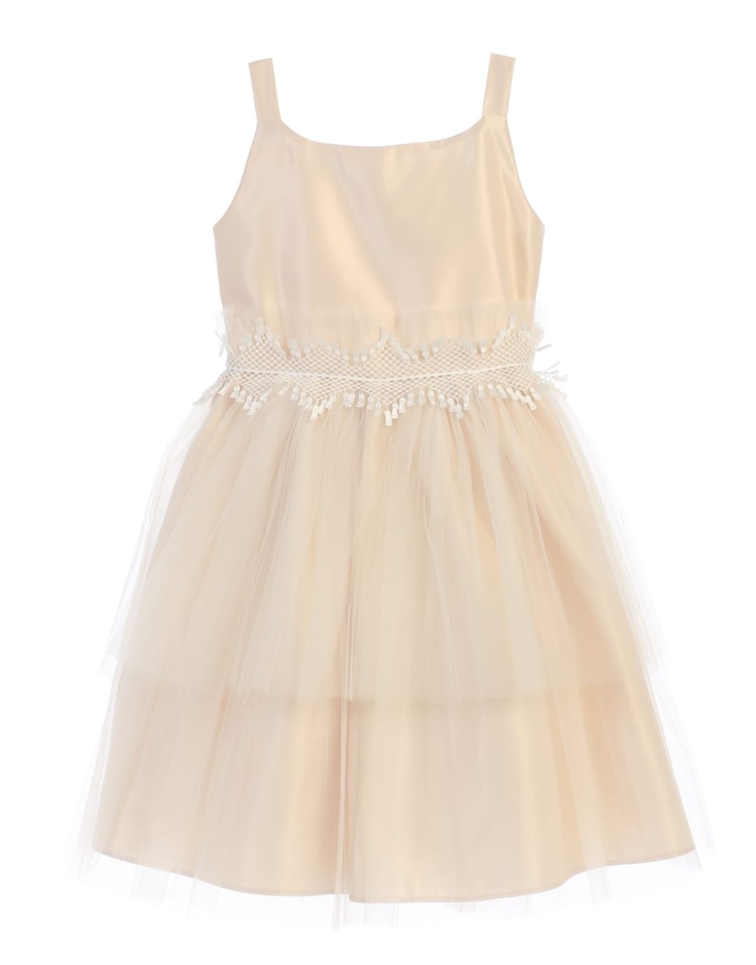 SK689 - Satin And Tulle Dress With Lace Accent