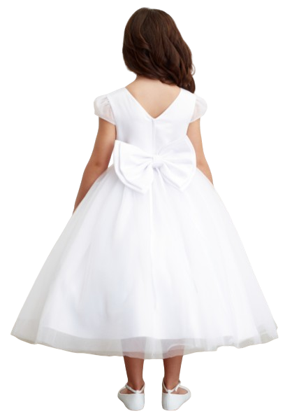 Classic Satin Bodice with Organza Sleeve and Rhinestone Accent at the Waistline.